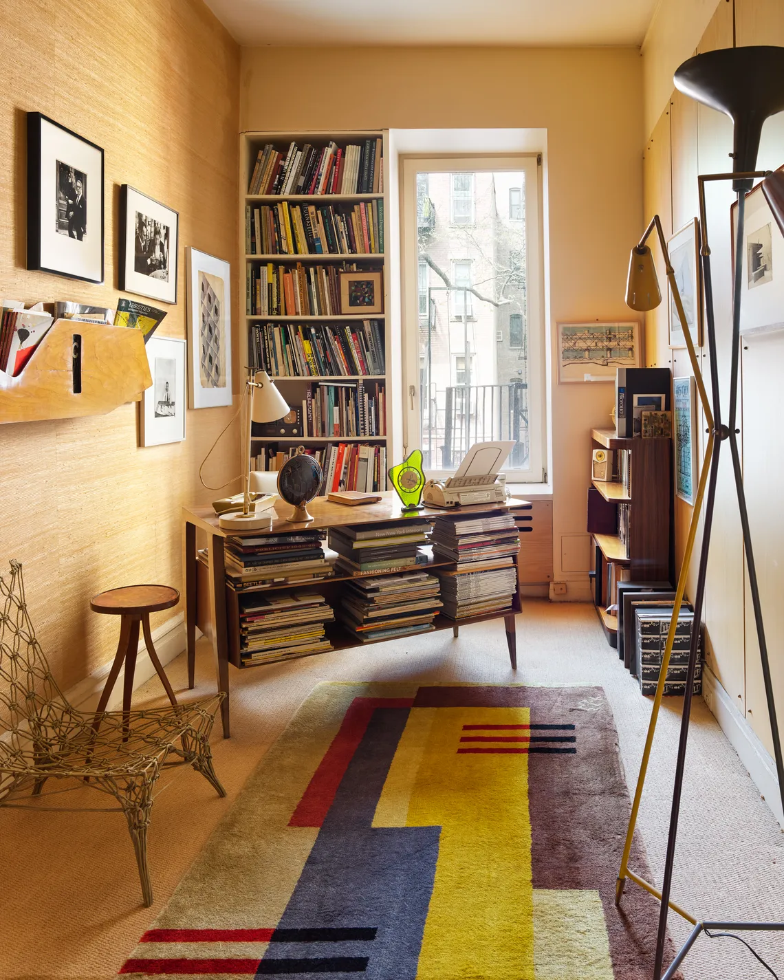 hristian Hubert helped design Jakobson’s decorative-arts library in the ‘80s. The desk and wall bookshelf were designed by Gio Ponti, the area rug is by Edward McKnight Kauffer, and the desk chair is by Richard Neutra. 4/10