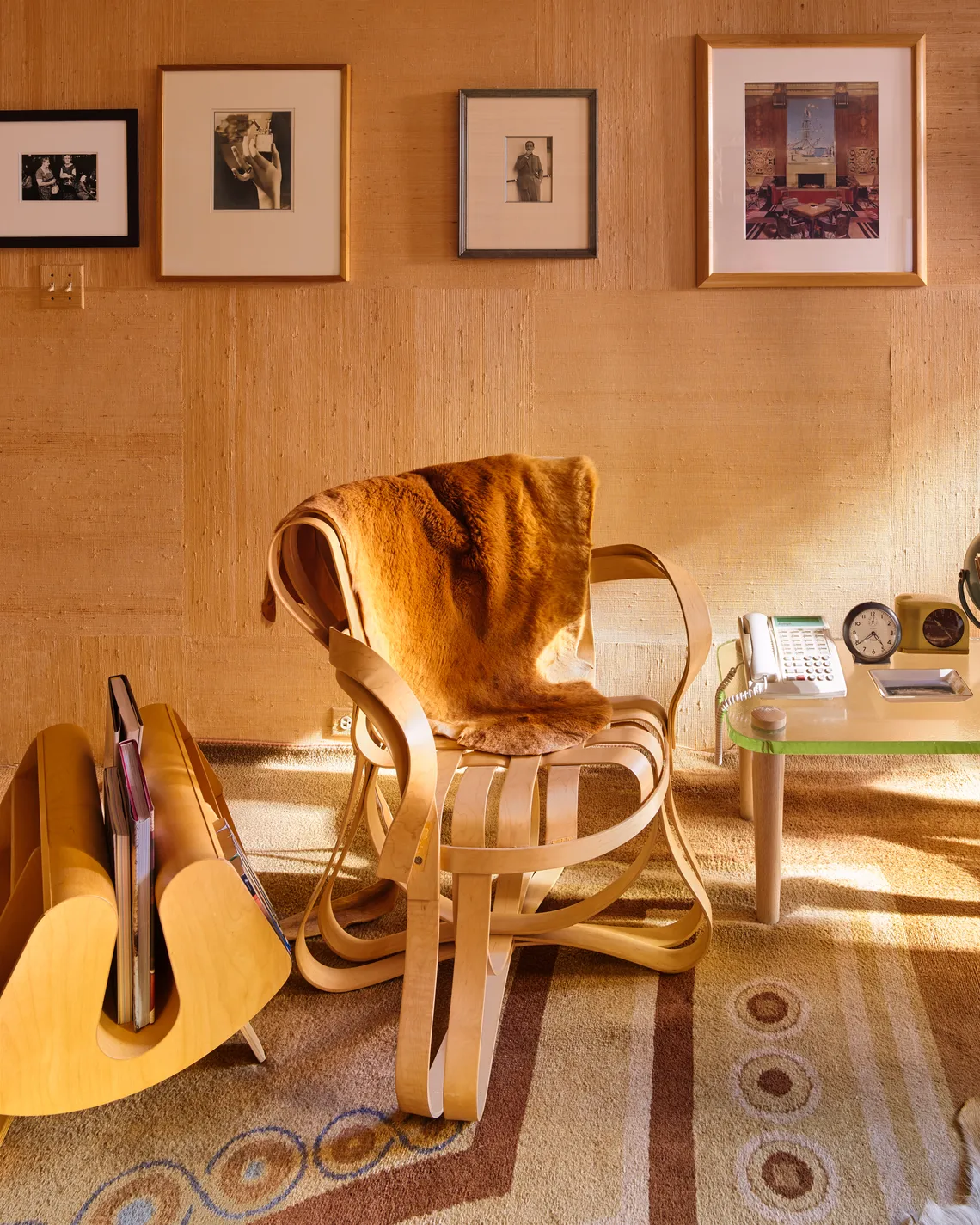 A Gehry plywood chair mingles with the art in a dressing room. 5/10