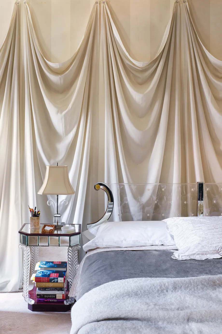 Jakobson’s bedroom features a Lucite bed from Grosfeld House. 7/10