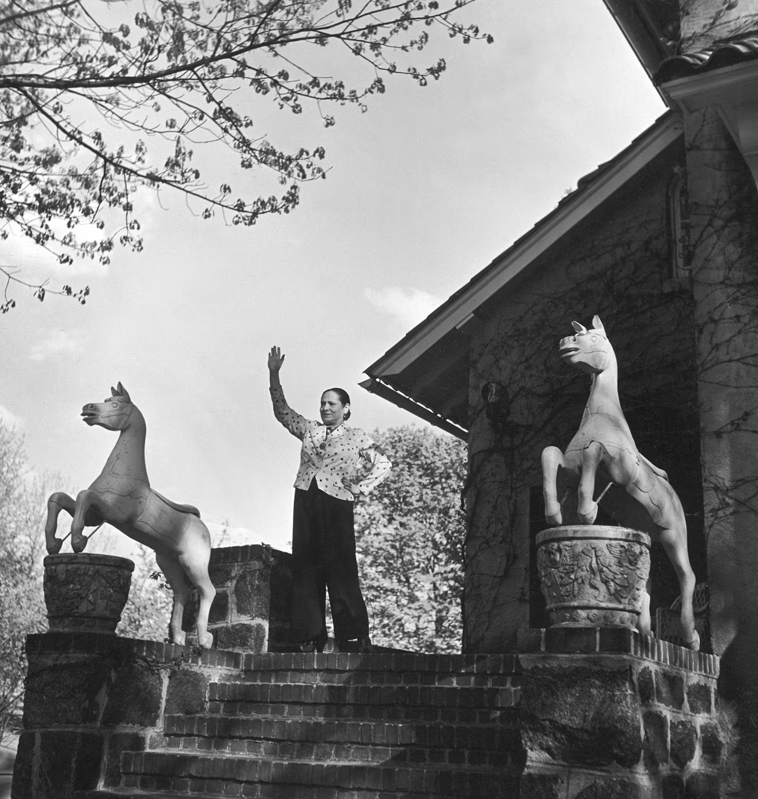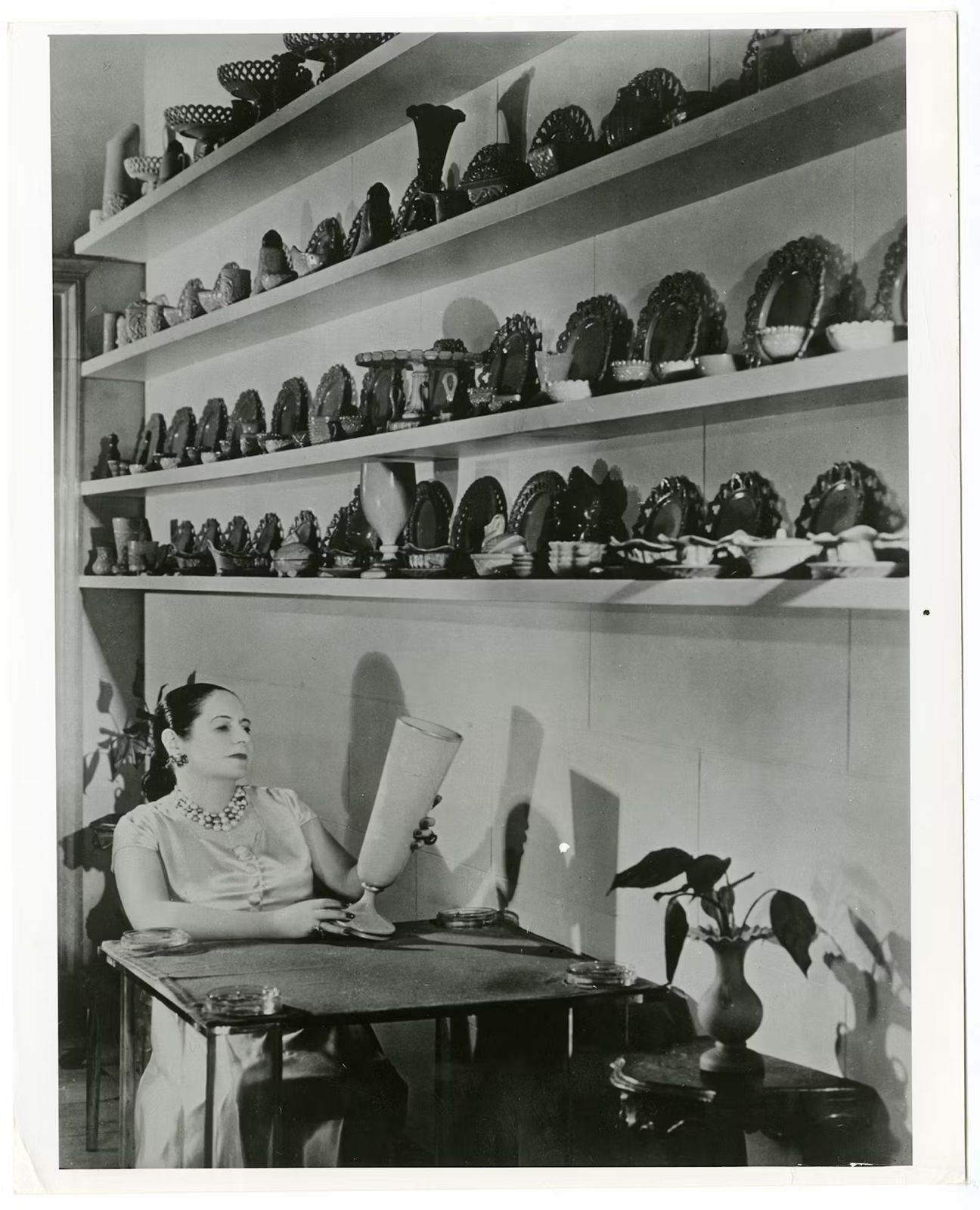 Rubinstein with her portrait collection; L-R from top: Salvador Dalí, Christian Bérard, Graham Sutherland, Roberto Montenegro, Marcel Vertes, Pavel Tchelitchew, Candido Portinari, Raoul Dufy, Margherita Russo, and Marie Laurencin. Picasso refused to paint her portrait but did forty drawings of her in the 1950s.