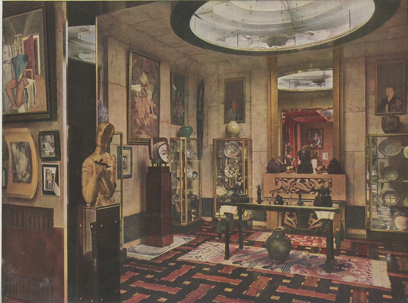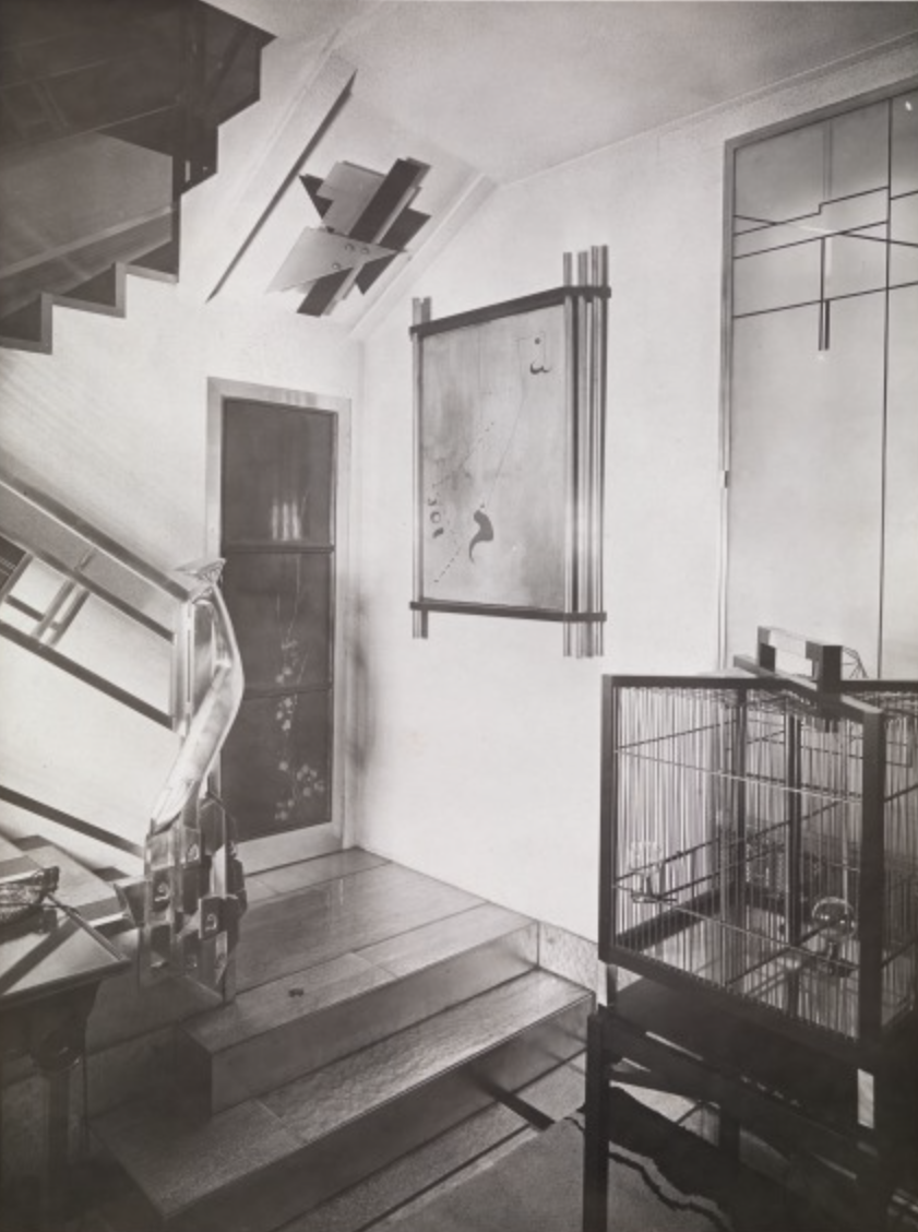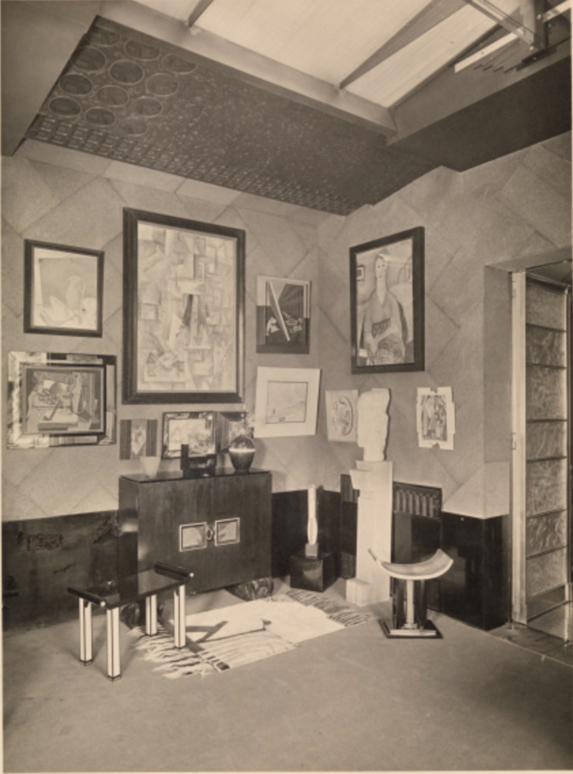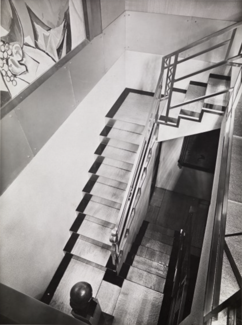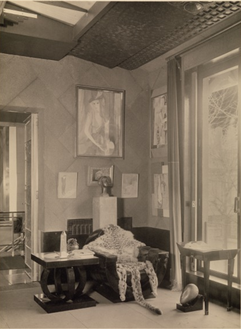 In 1928, Doucet shifted his energies to 33 rue Saint-James, a home in the suburb of Neuilly-sur-Seine owned by his wife, Jeanne Roger, whom he married in 1919. Doucet commissioned the architect Paul Ruaud to build an annex that would serve as his “studio.” Reached by a grand staircase designed by Joseph Csaky, the “studio” would be filled with contemporary art by Constantin Brancusi, Giorgio de Chirico, André Derain, Marcel Duchamp, Henri Matisse, and Amadeo Modigliani. Doucet also commissioned custom-made modernist furniture by the likes of Pierre-Emile Legrain, Eileen Gray, and Paul Iribe. Doucet died of a heart attack in 1929, shortly after the completion of the space.