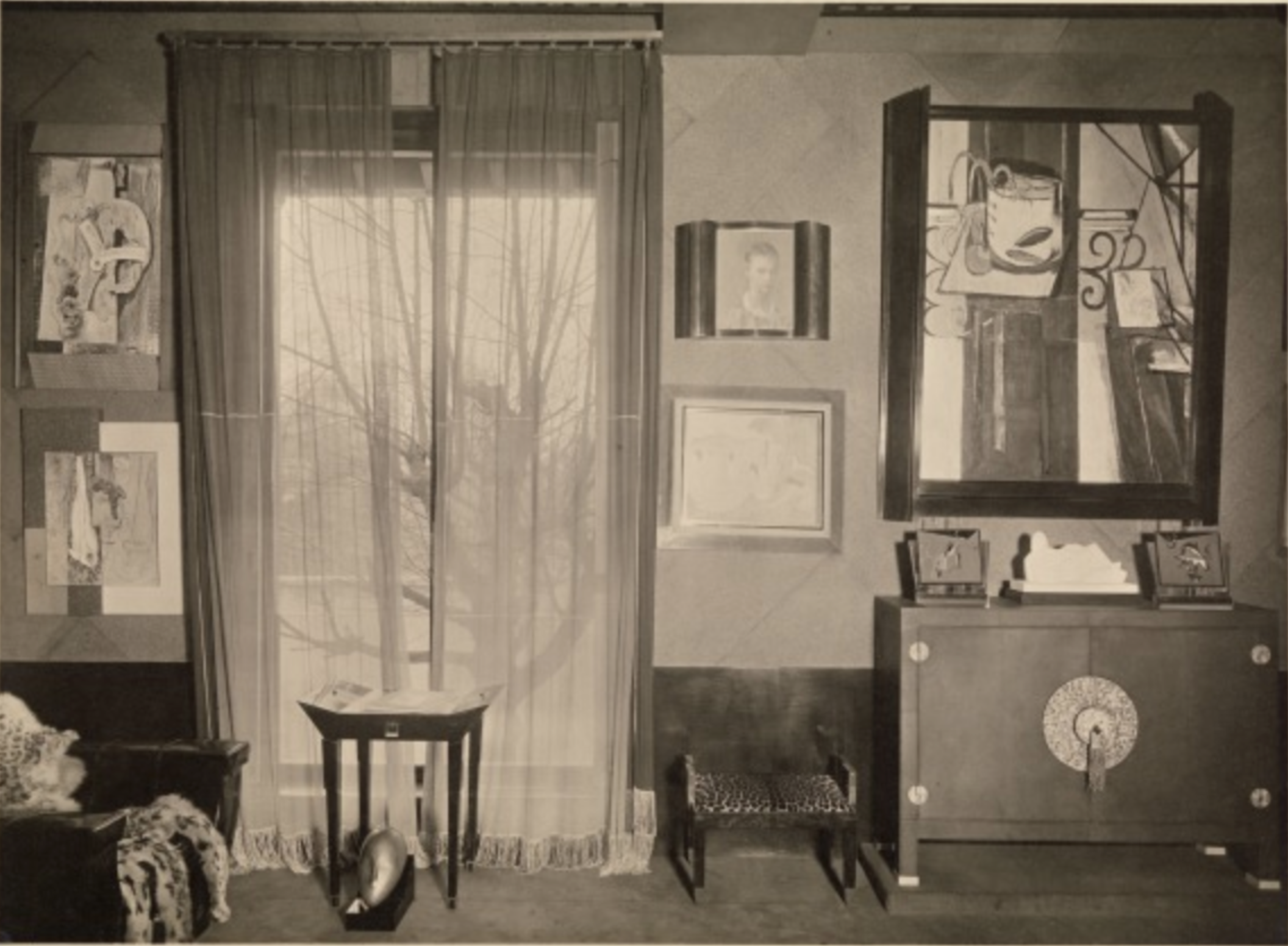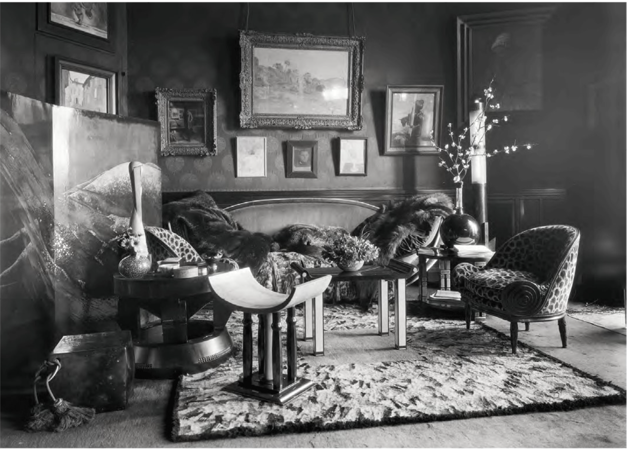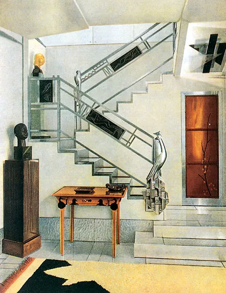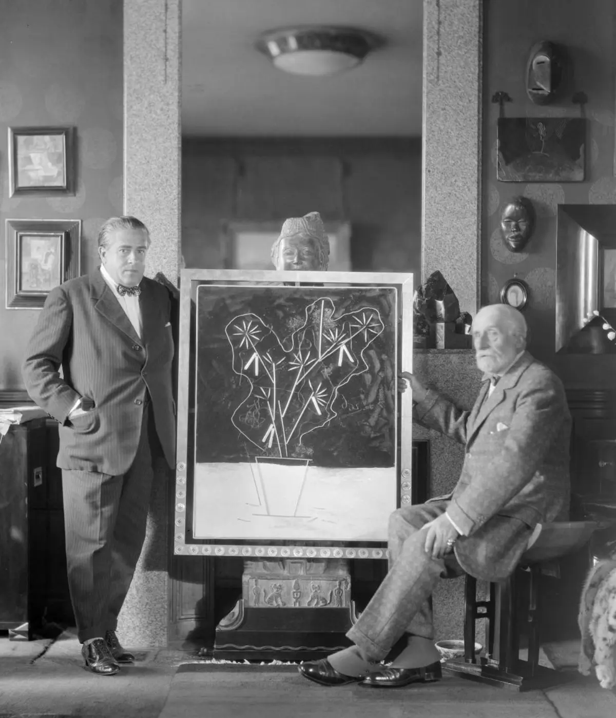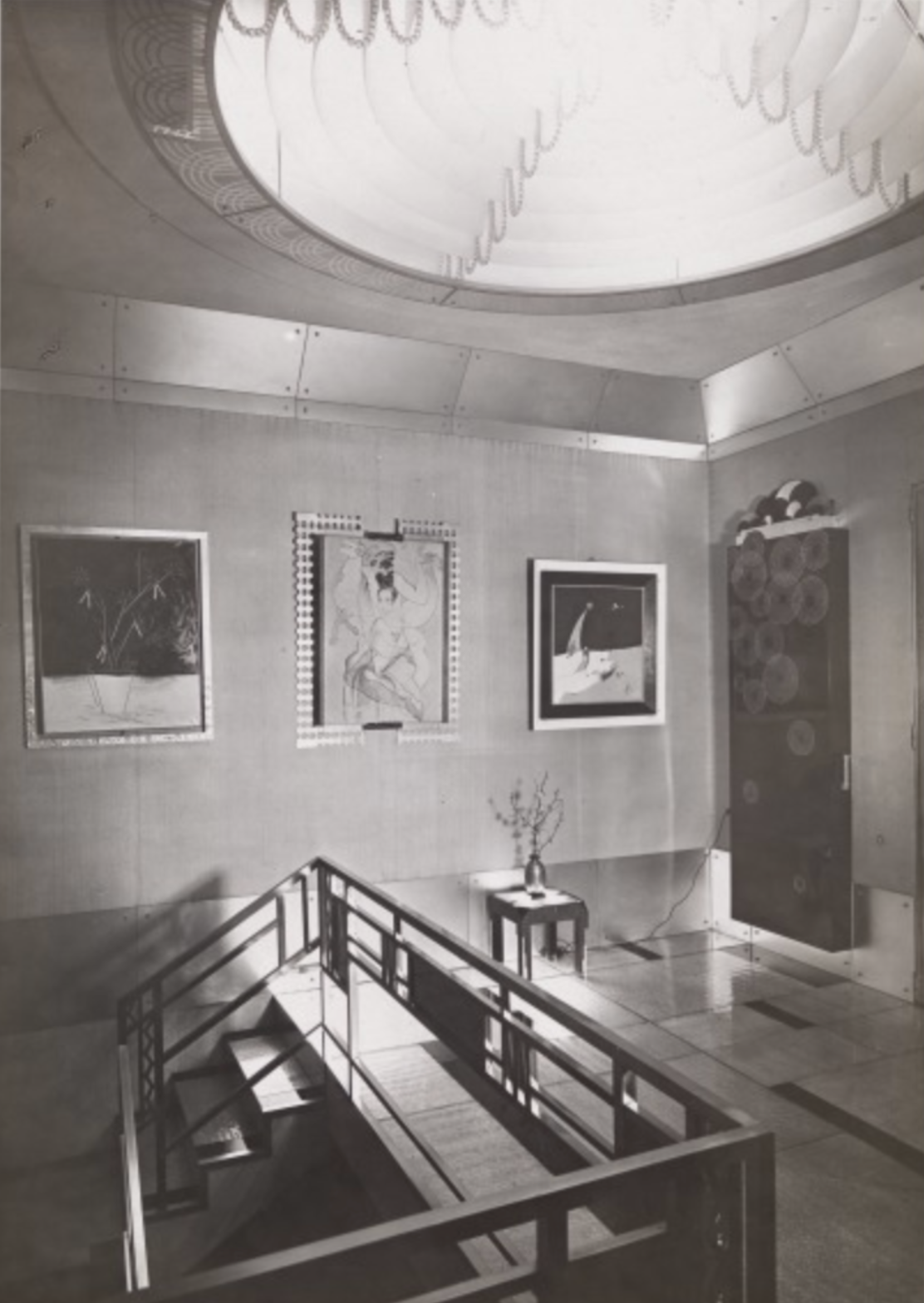 In 1928, Doucet shifted his energies to 33 rue Saint-James, a home in the suburb of Neuilly-sur-Seine owned by his wife, Jeanne Roger, whom he married in 1919. Doucet commissioned the architect Paul Ruaud to build an annex that would serve as his “studio.” Reached by a grand staircase designed by Joseph Csaky, the “studio” would be filled with contemporary art by Constantin Brancusi, Giorgio de Chirico, André Derain, Marcel Duchamp, Henri Matisse, and Amadeo Modigliani. Doucet also commissioned custom-made modernist furniture by the likes of Pierre-Emile Legrain, Eileen Gray, and Paul Iribe. Doucet died of a heart attack in 1929, shortly after the completion of the space.