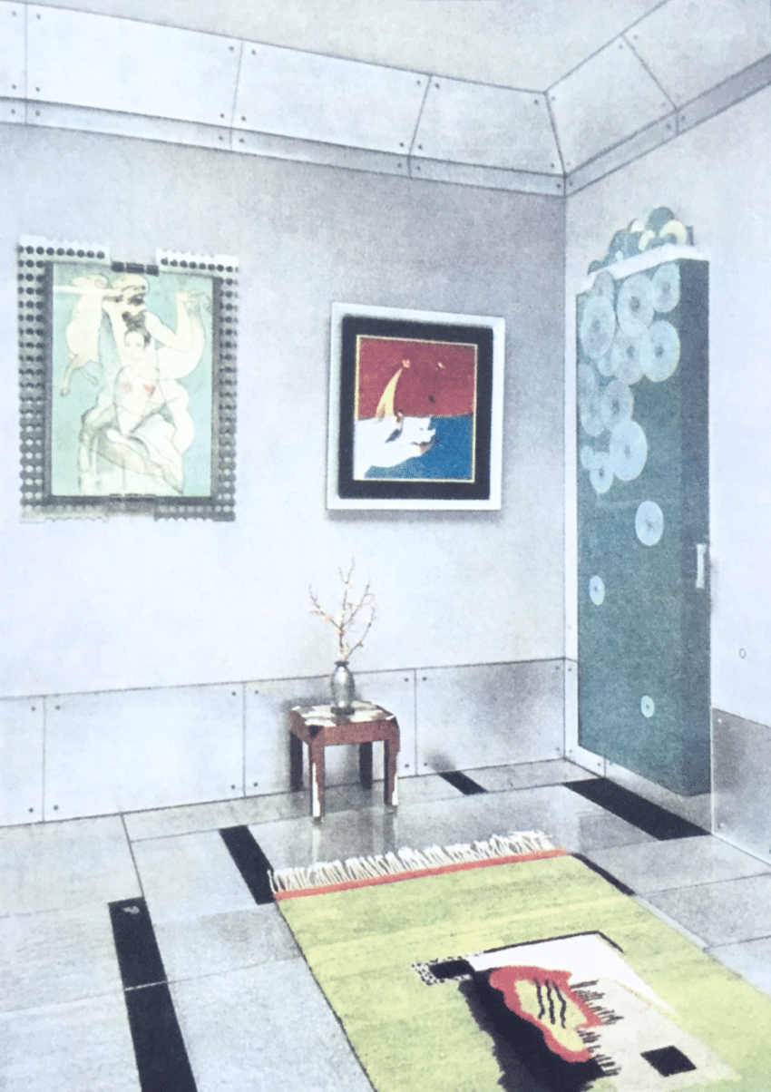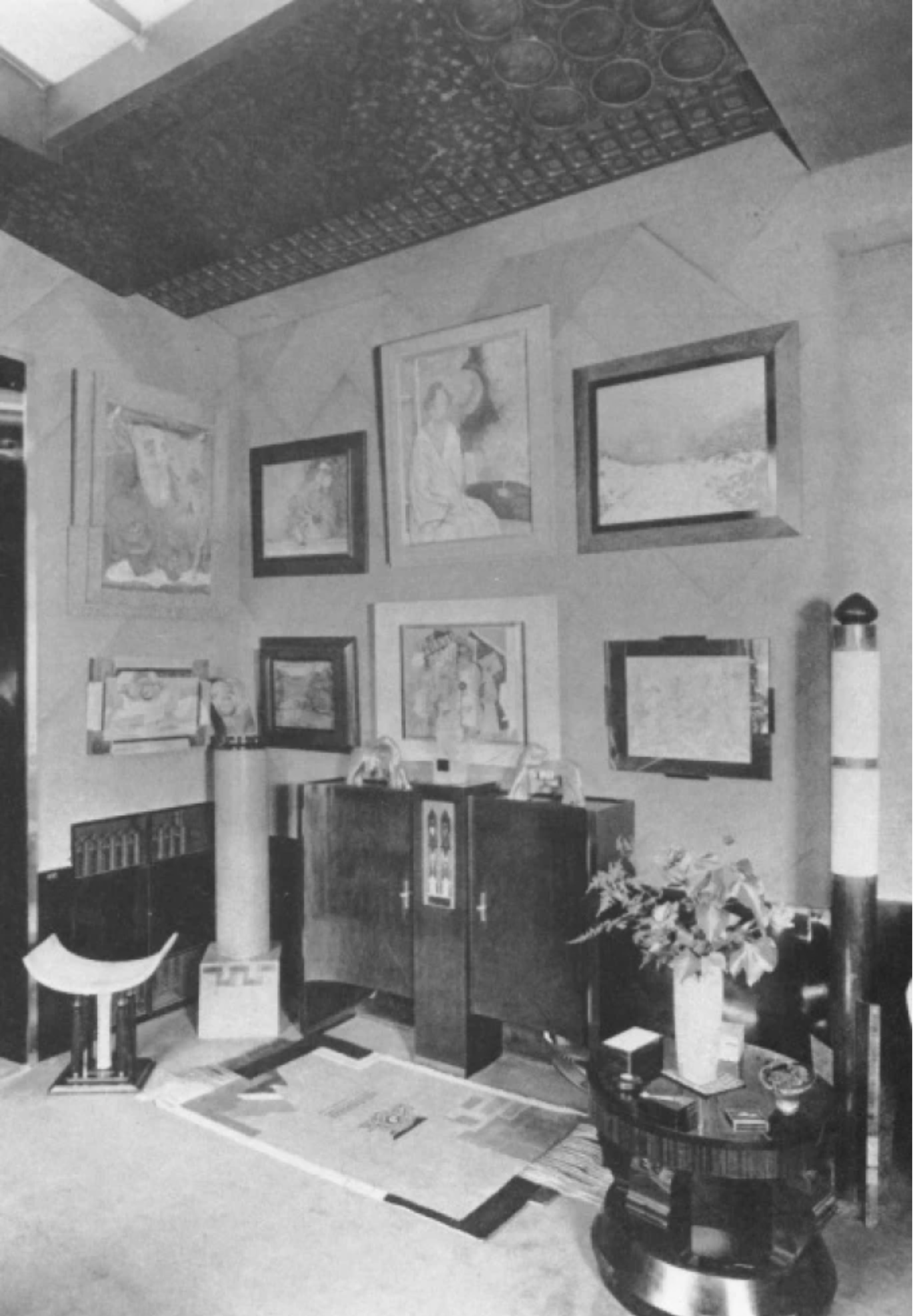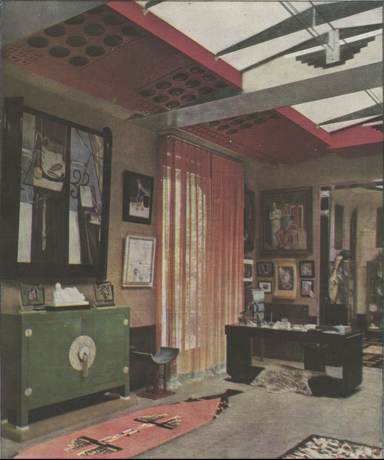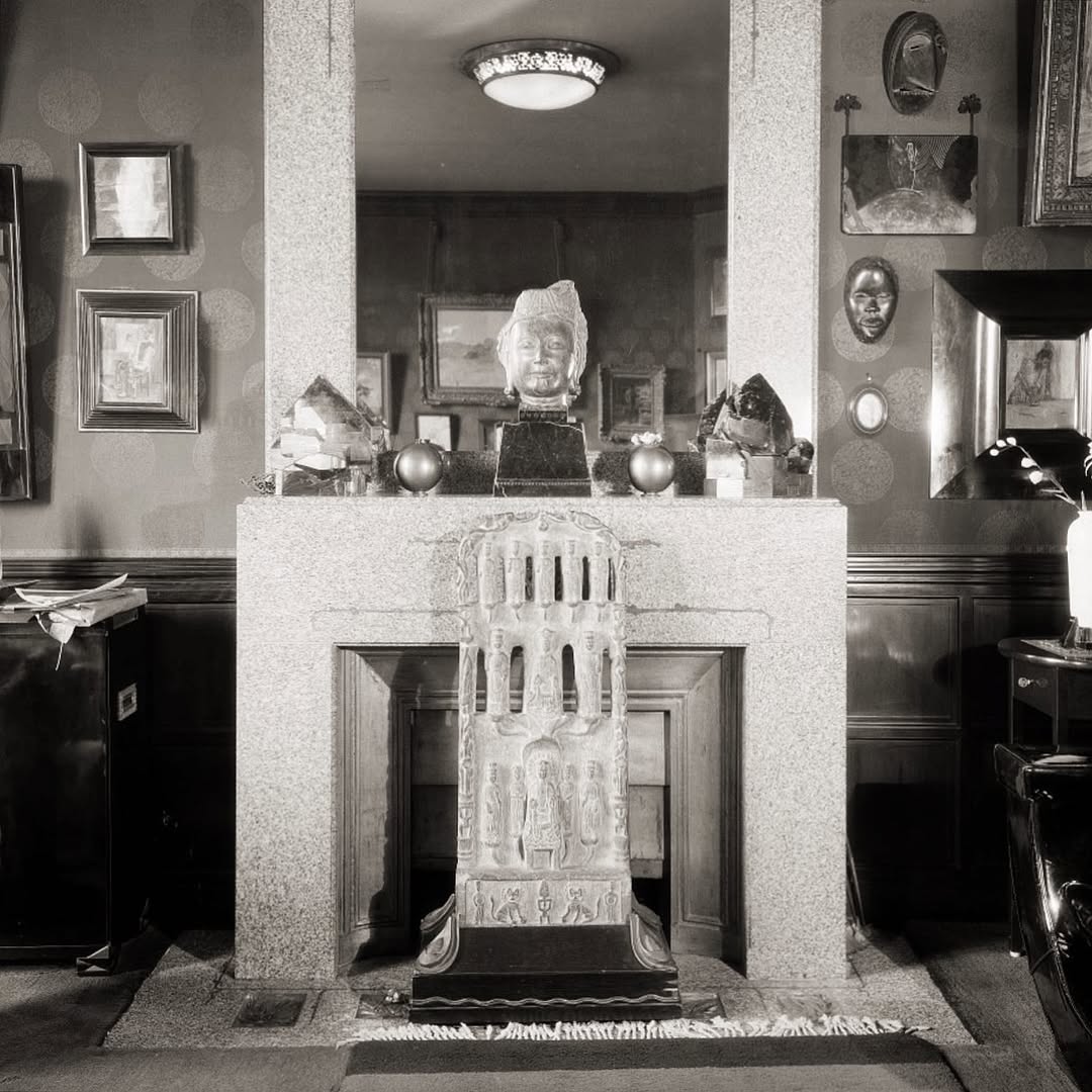 In 1928, Doucet shifted his energies to 33 rue Saint-James, a home in the suburb of Neuilly-sur-Seine owned by his wife, Jeanne Roger, whom he married in 1919. Doucet commissioned the architect Paul Ruaud to build an annex that would serve as his “studio.” Reached by a grand staircase designed by Joseph Csaky, the “studio” would be filled with contemporary art by Constantin Brancusi, Giorgio de Chirico, André Derain, Marcel Duchamp, Henri Matisse, and Amadeo Modigliani. Doucet also commissioned custom-made modernist furniture by the likes of Pierre-Emile Legrain, Eileen Gray, and Paul Iribe. Doucet died of a heart attack in 1929, shortly after the completion of the space.