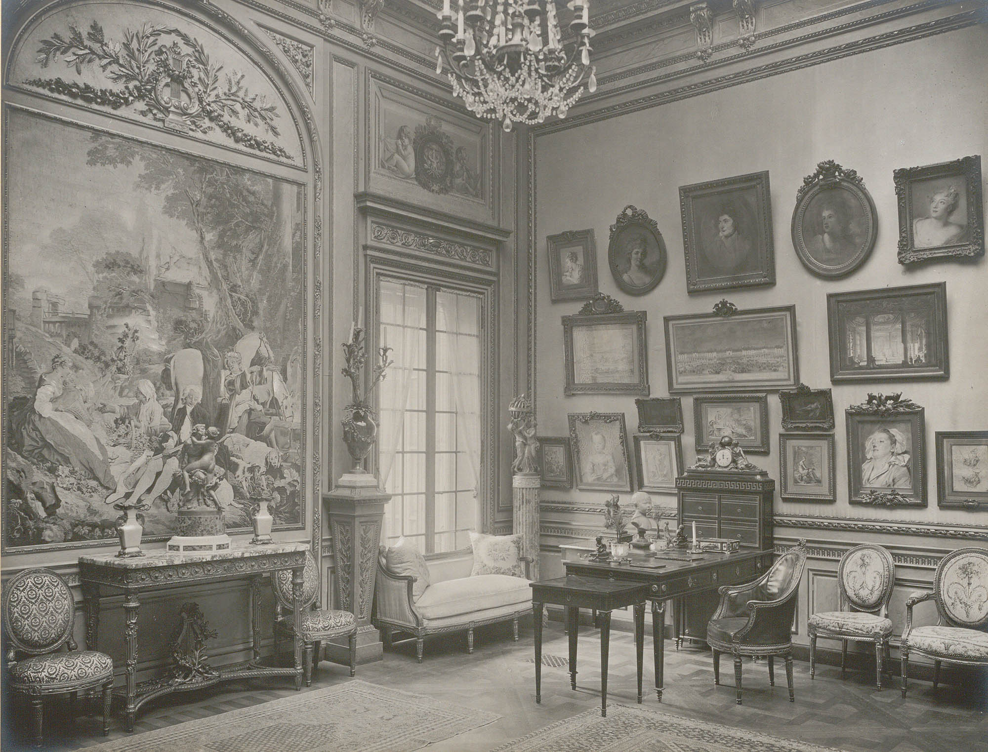Around the turn of the century, Doucet inherited the family business. He would then commission society architect Louis Parent to build an 18th-century-style mansion on rue Spontini in the 16th arrondissement. The building was specifically intended to showcase his 18th-century works of art, and Doucet worked with decorators Adrien Karbowsky and Georges Hoentschel to design the interiors. Completed in 1907, the hôtel particulier housed works by Watteau, de la Tour, Fragonard, and more, in addition to furniture and rare books. [2]