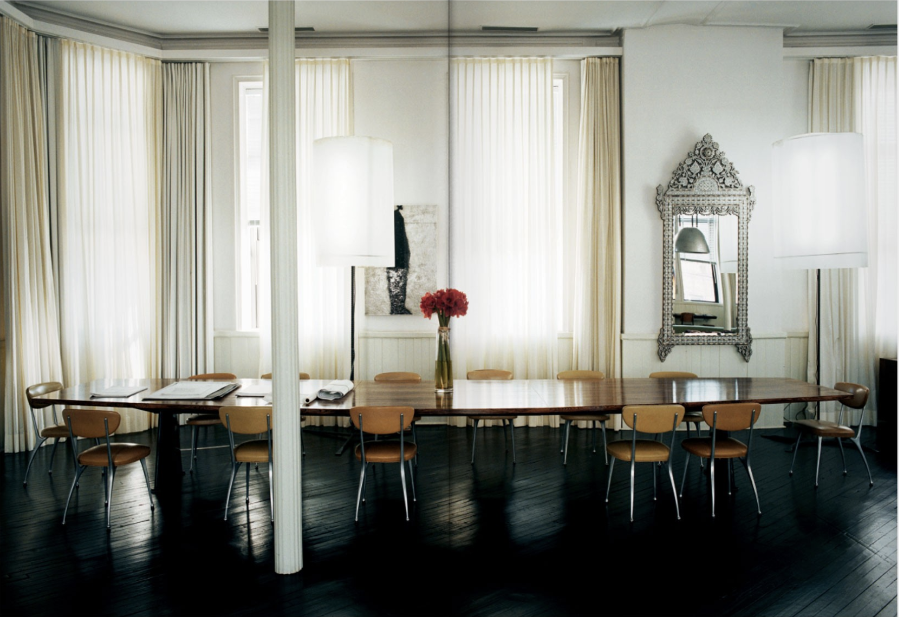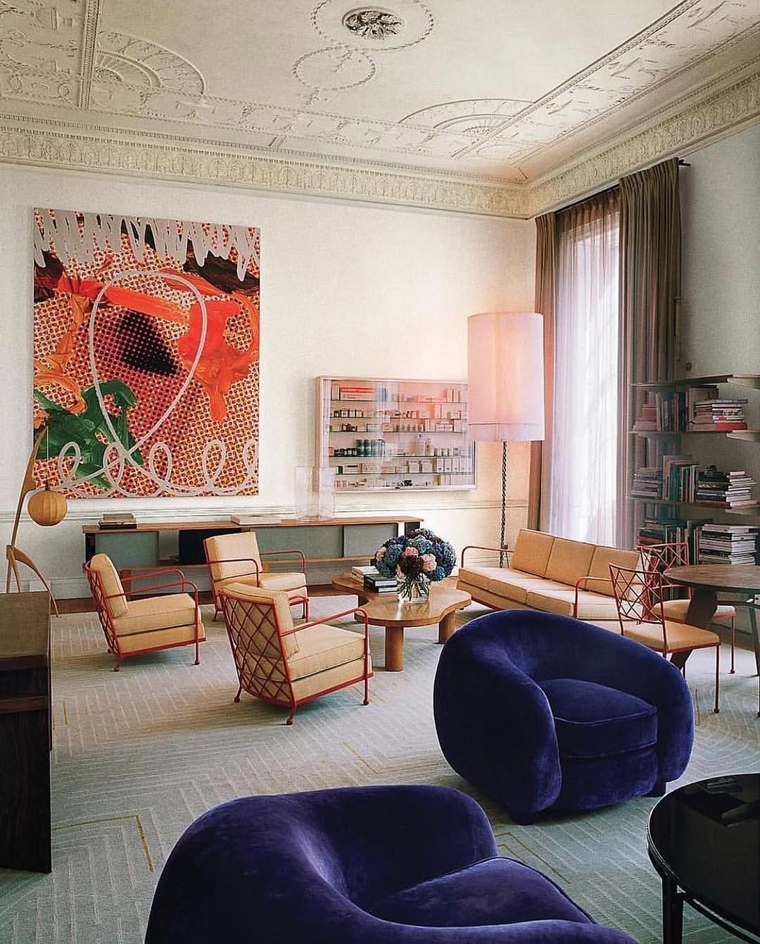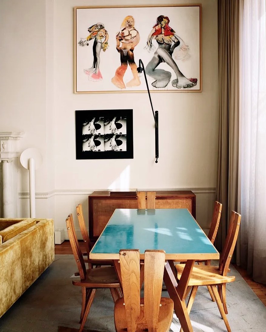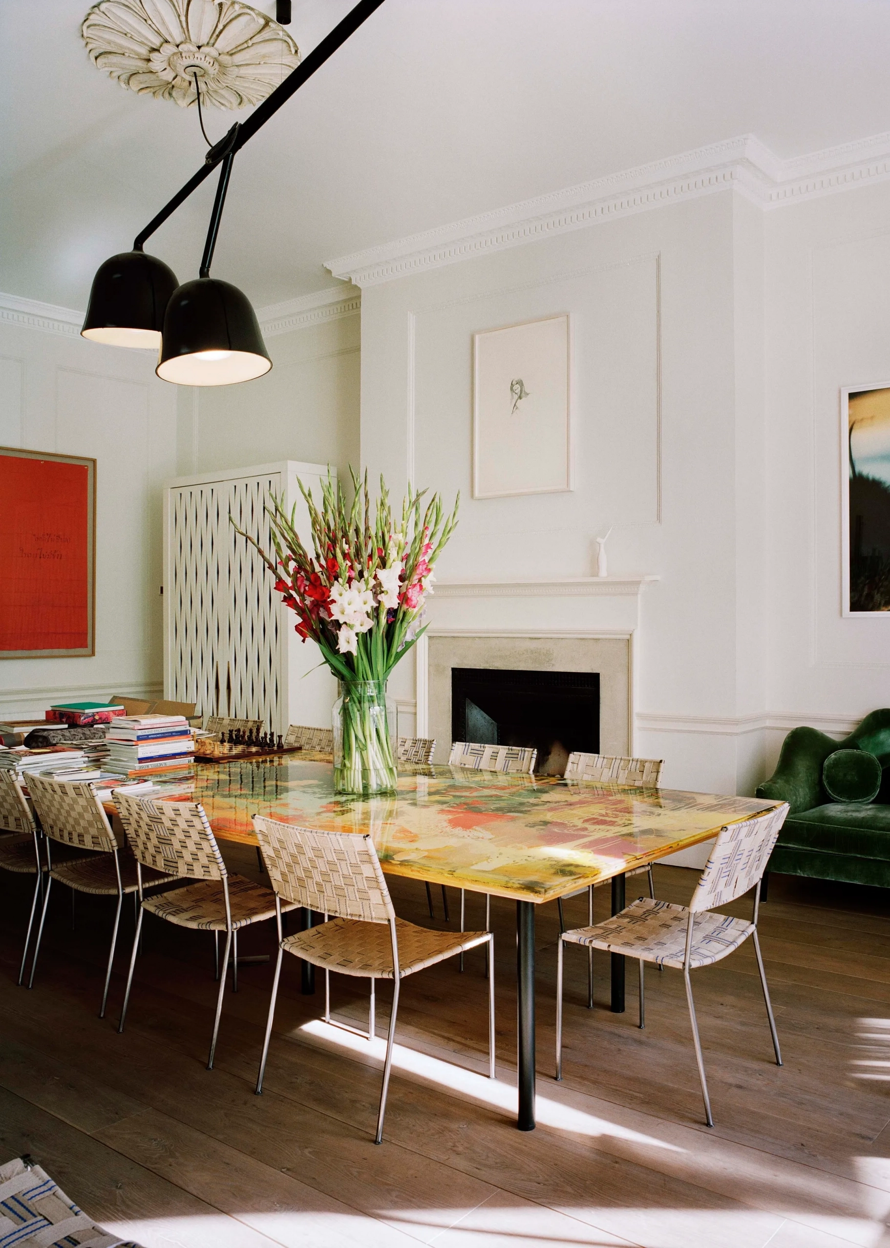 Hoffmann’s homes reflect her childhood desire to be an Architektin von drinnen, an architect of the interior. Her London home, designed by India Mahdavi features high ceilings, light, and lots of color. “There was a time when I was collecting only drawings, and I really loved to hang them myself with small nails and a hammer; it was easy and flexible,” she says. “I’m interested in the house as a living organism.” [6]
