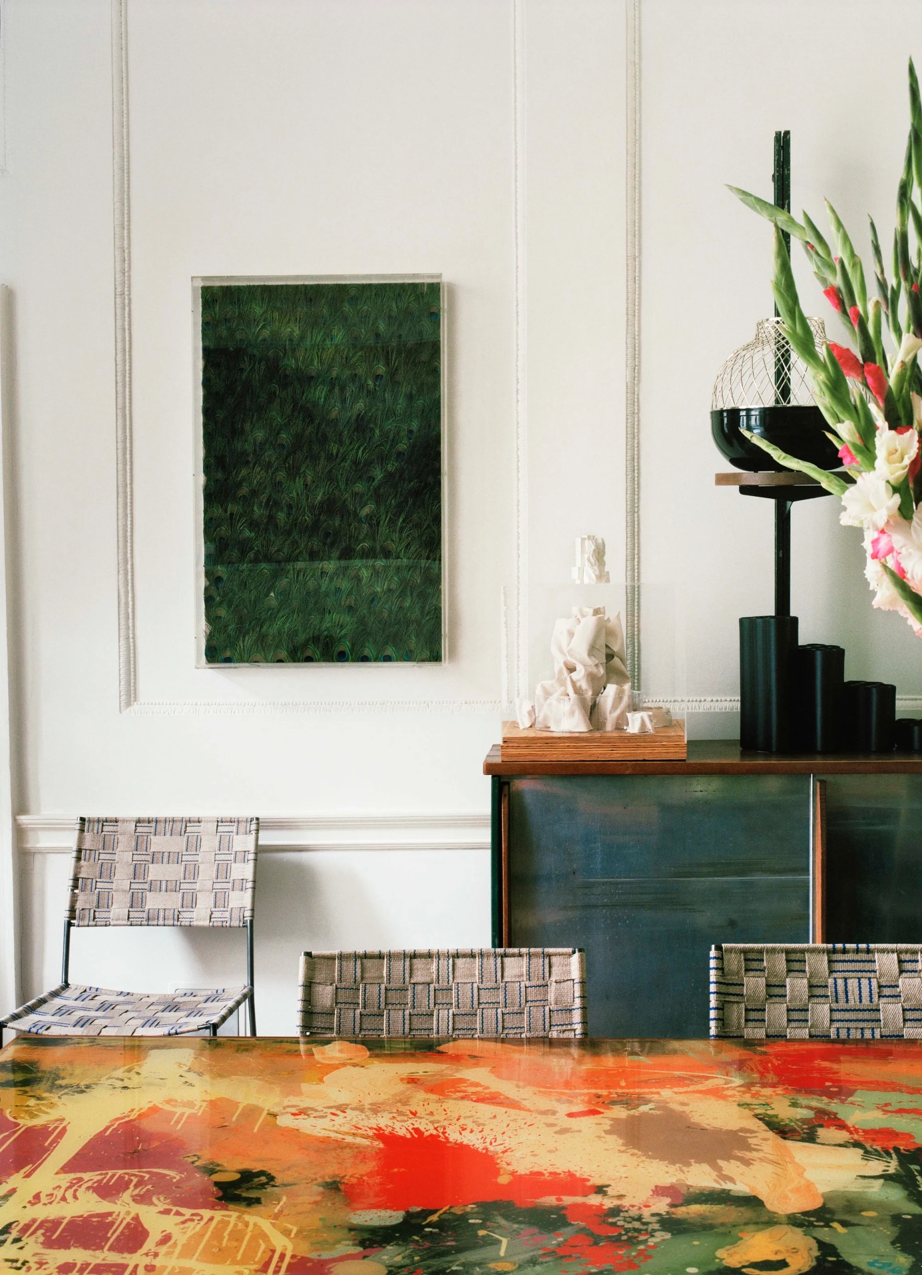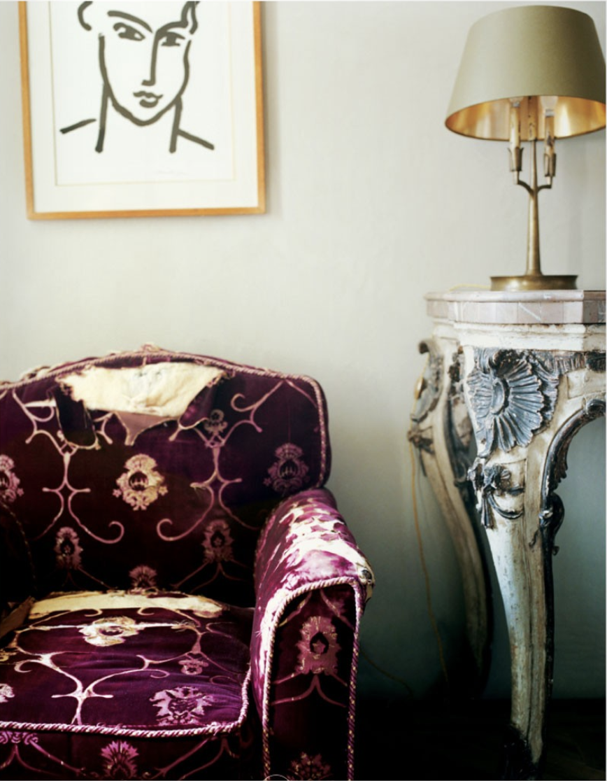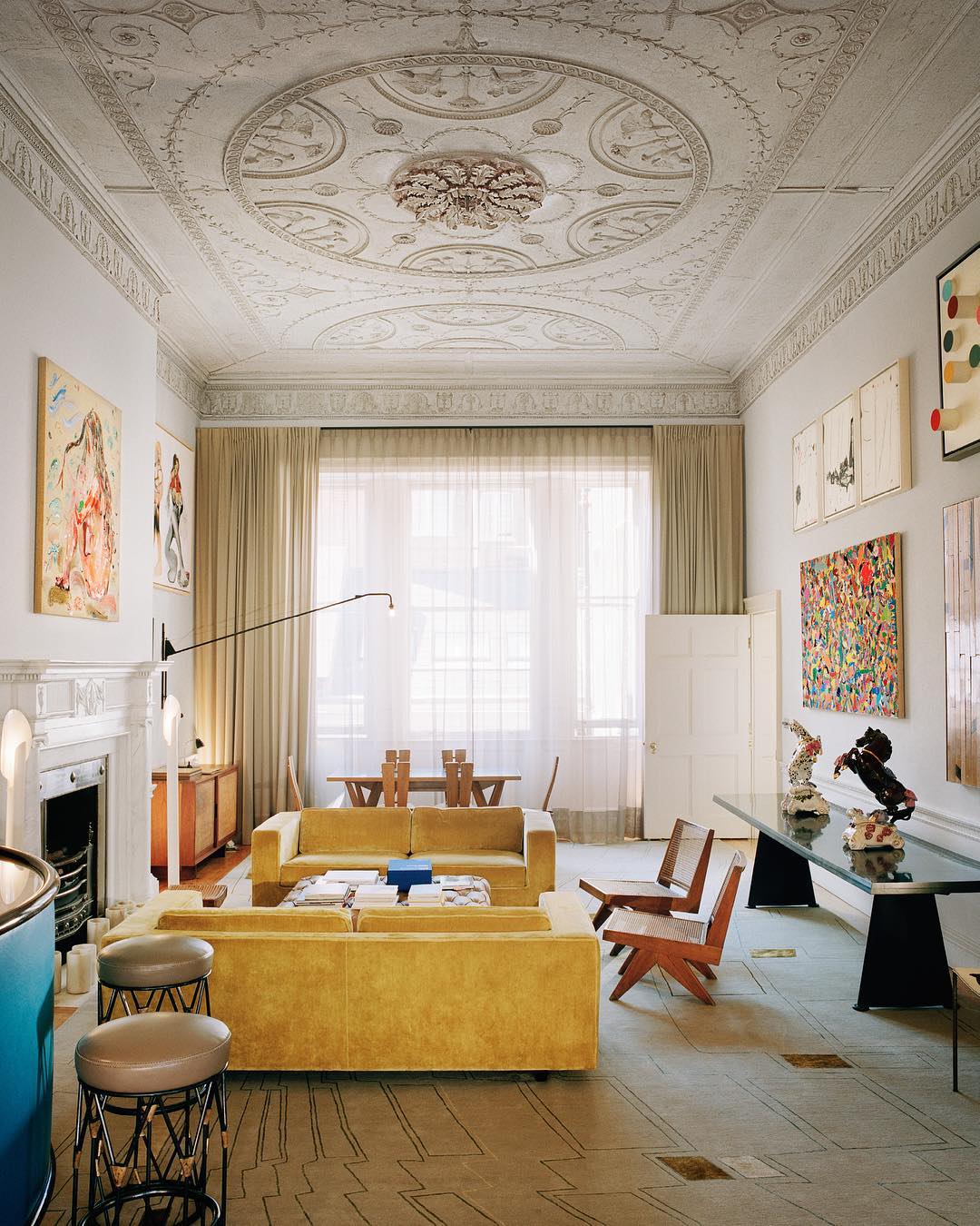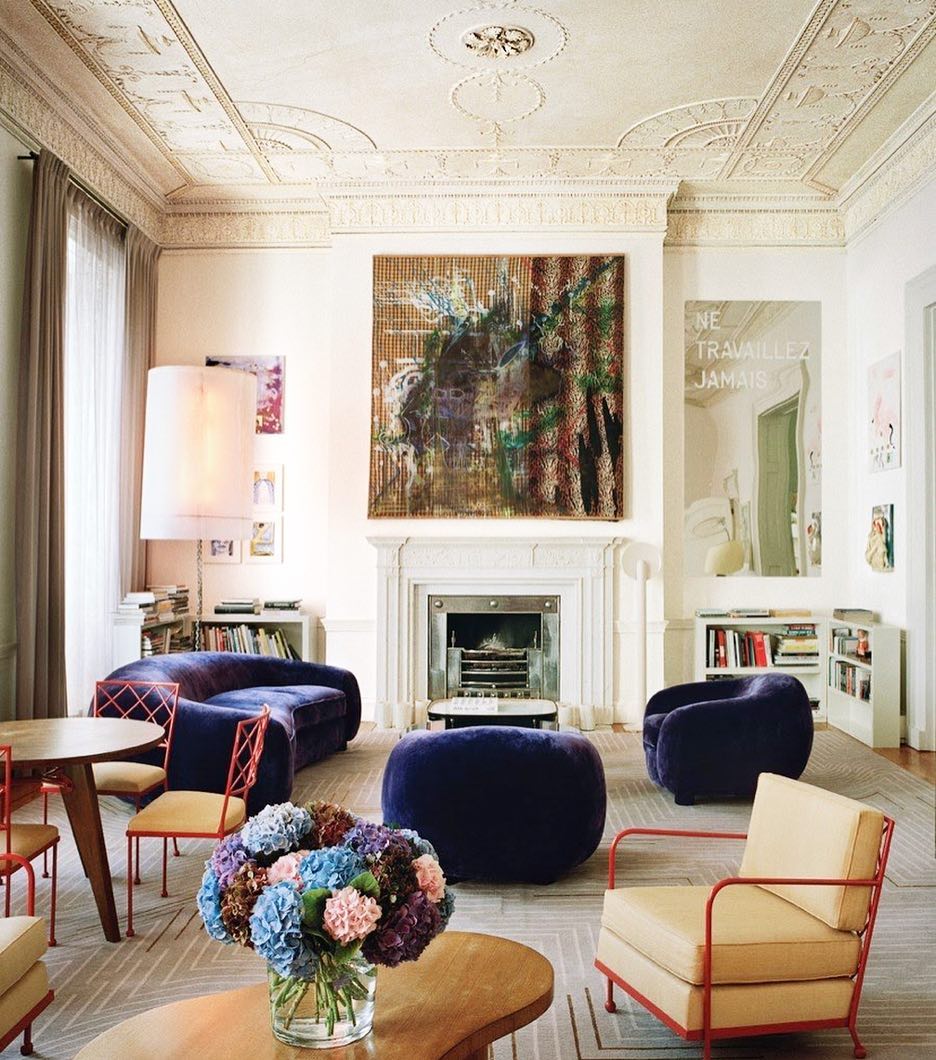 Hoffmann’s homes reflect her childhood desire to be an Architektin von drinnen, an architect of the interior. Her London home, designed by India Mahdavi features high ceilings, light, and lots of color. “There was a time when I was collecting only drawings, and I really loved to hang them myself with small nails and a hammer; it was easy and flexible,” she says. “I’m interested in the house as a living organism.” [6]