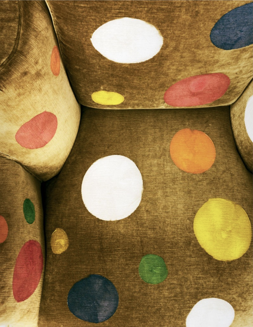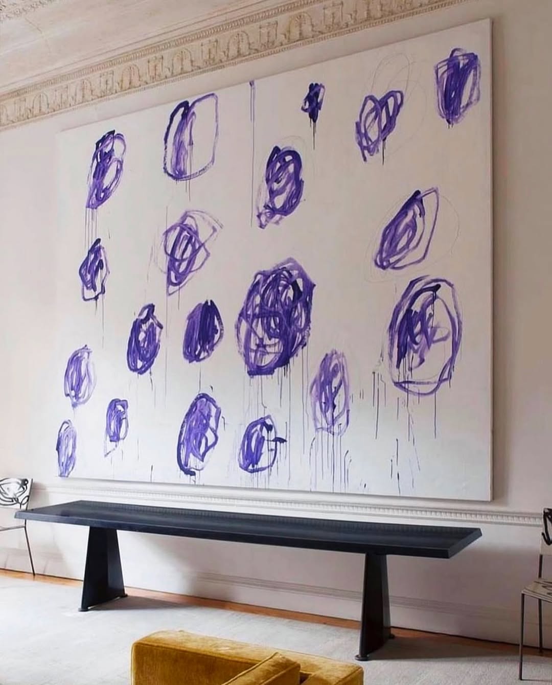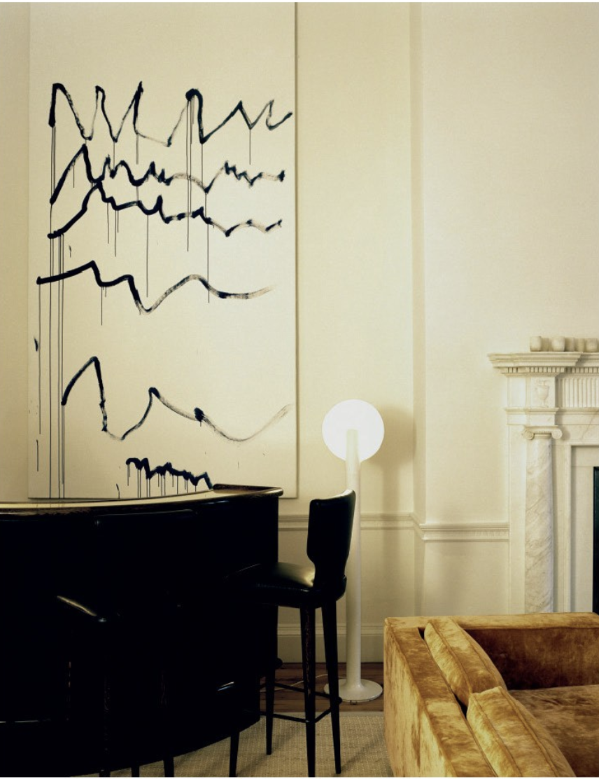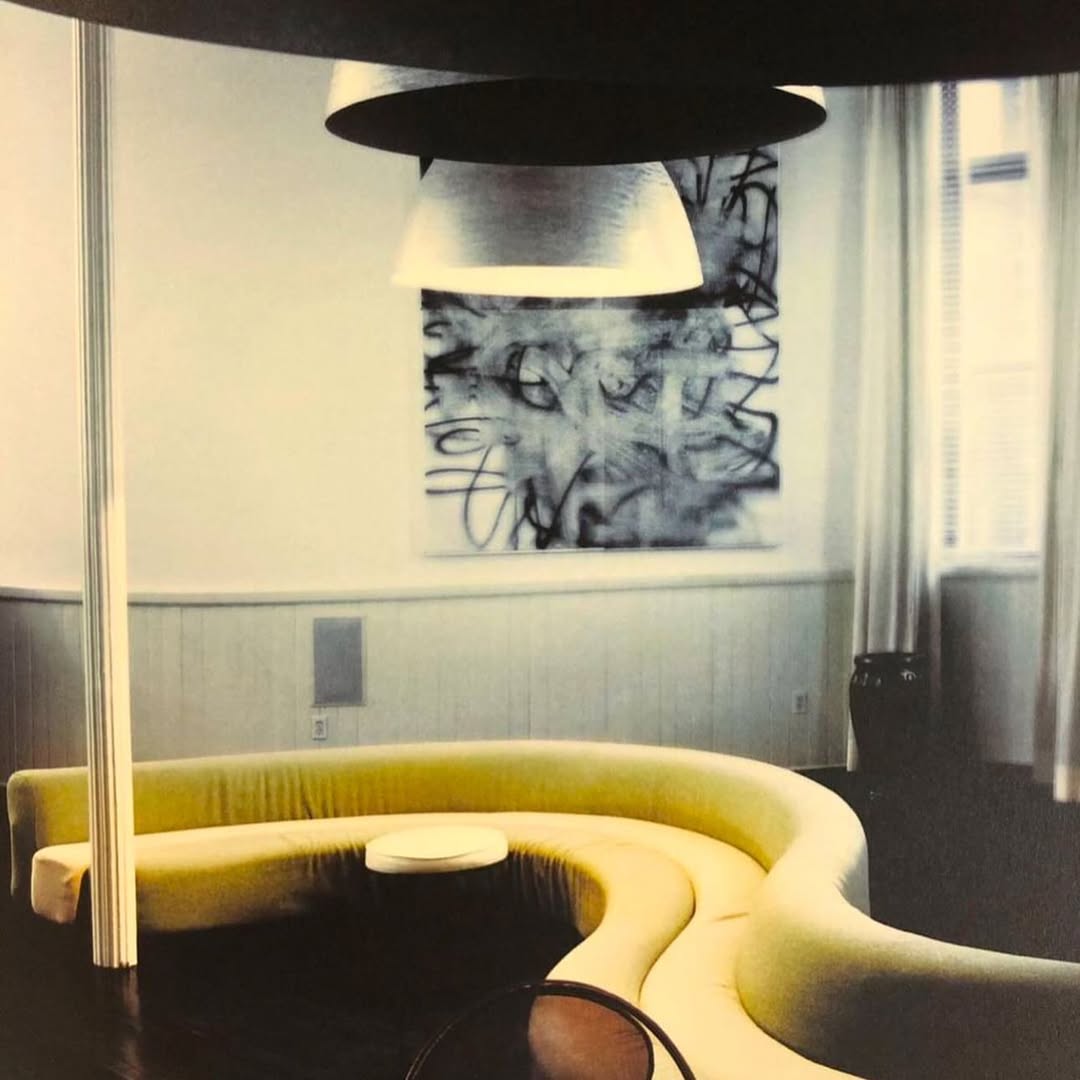 Christopher Wool, “Untitled (P442)” (2007) above a Pierre Paulin couch 12/24